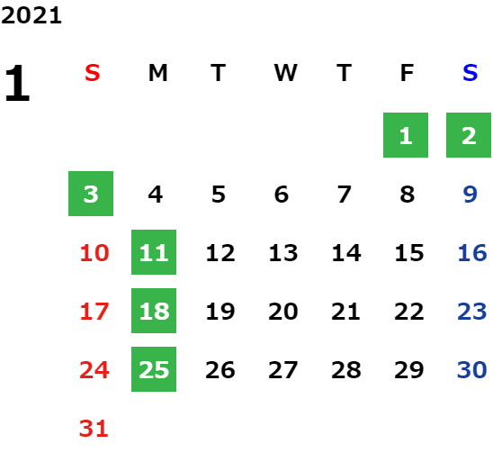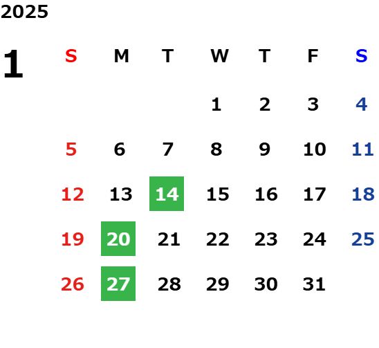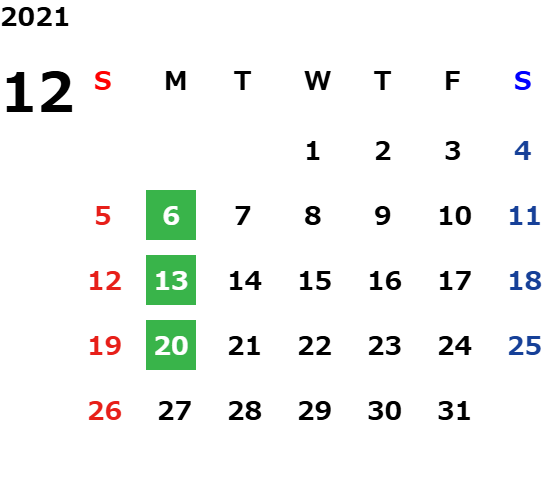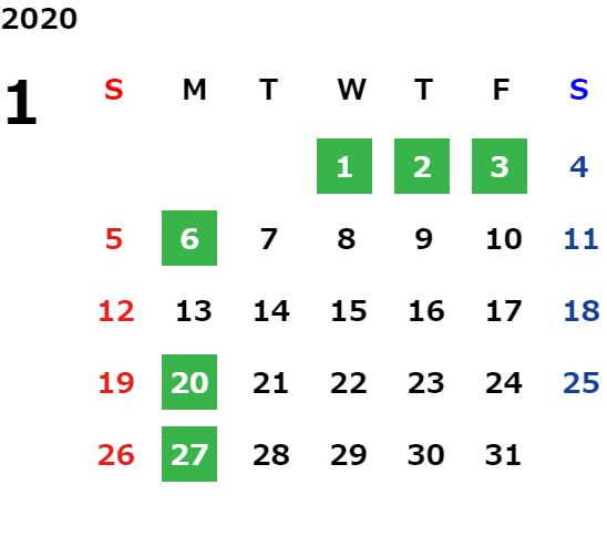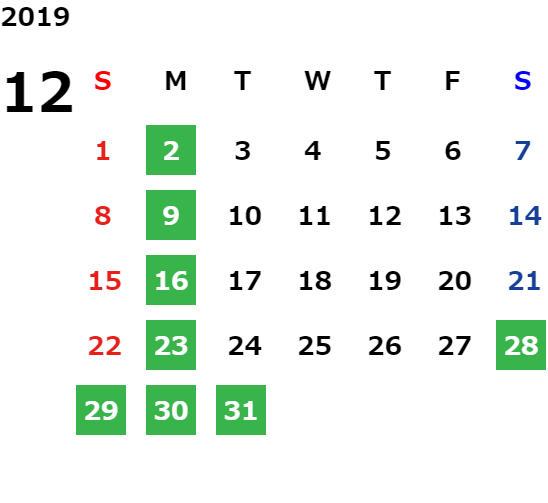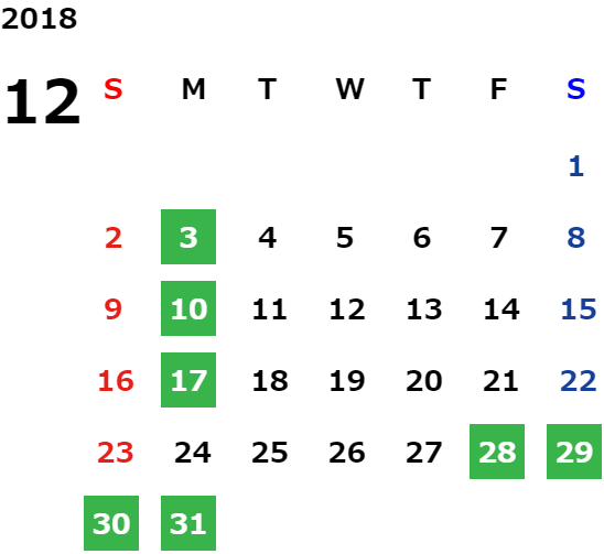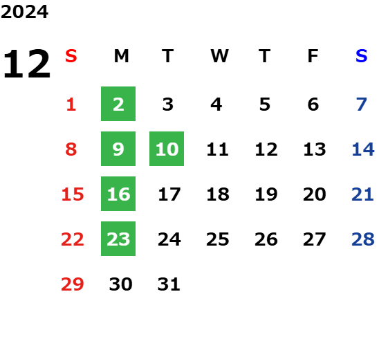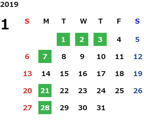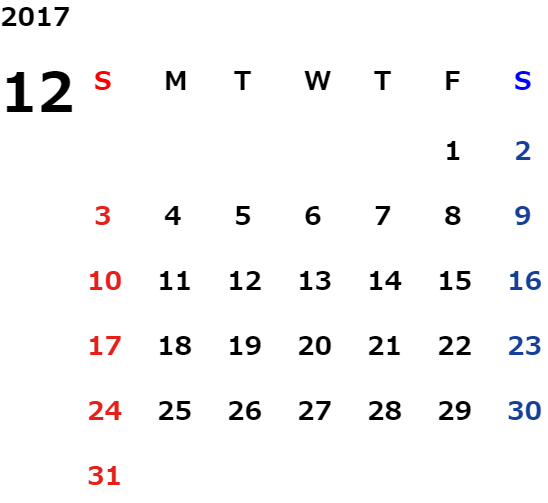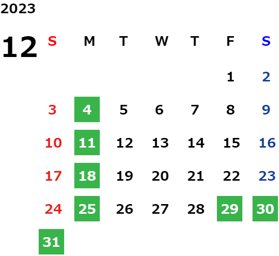 年末年始休業日のご案内