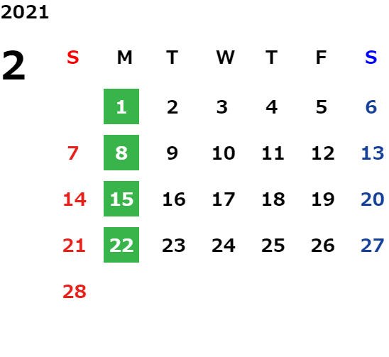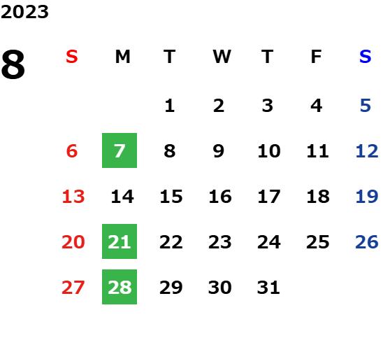 月曜日※/第2・3火曜日(※祝日の場合は営業)
