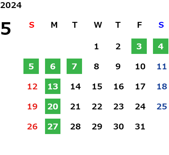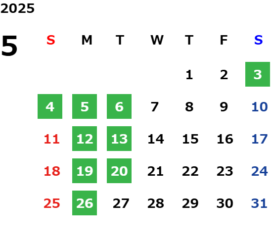 GW休業日のお知らせ