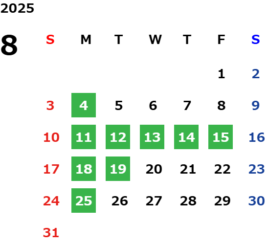 夏季休業期間のお知らせ