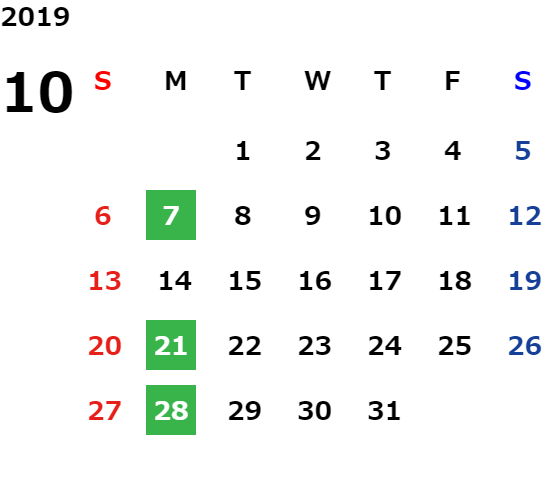 営業日カレンダー