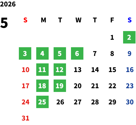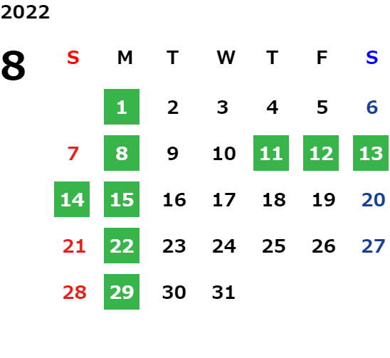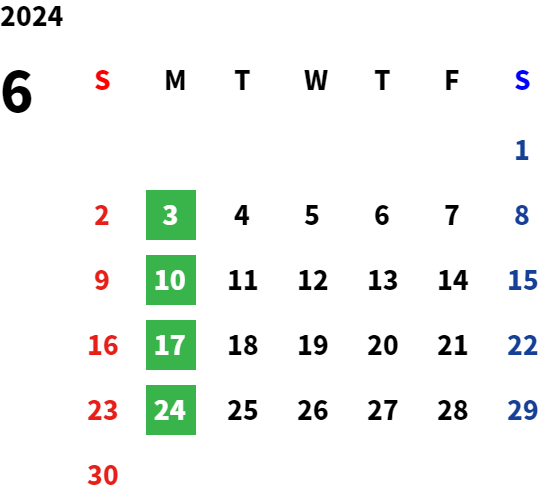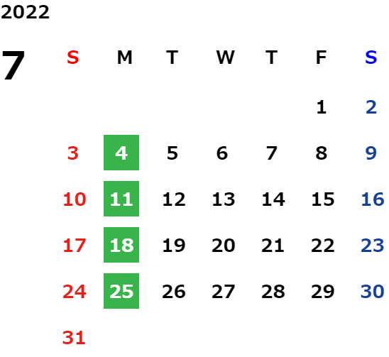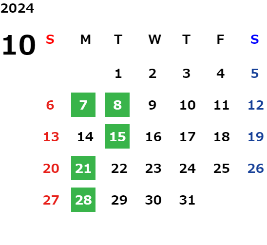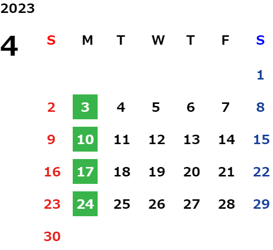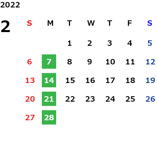 月曜日※・第2火曜日(※祝日の場合は営業、翌火曜日が定休日)