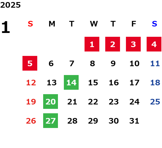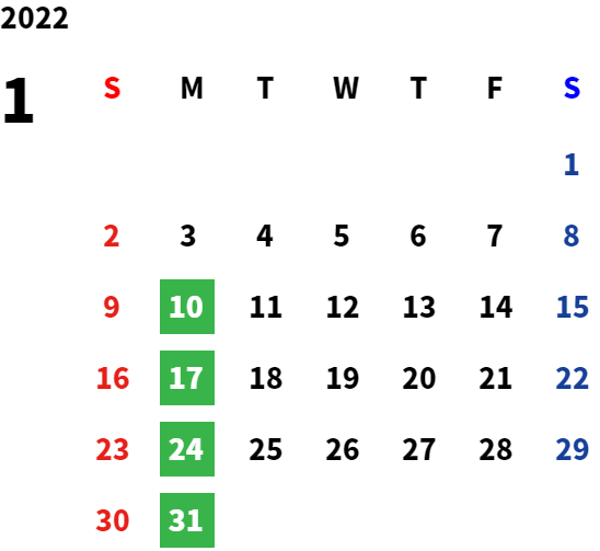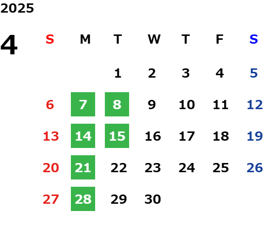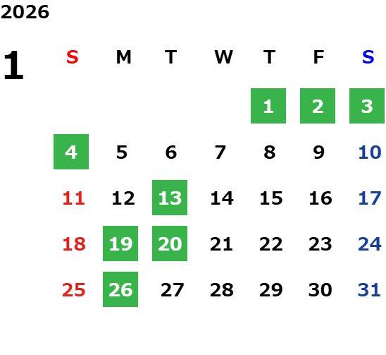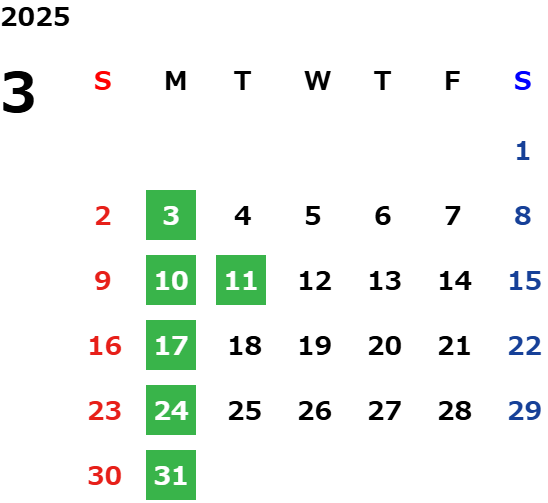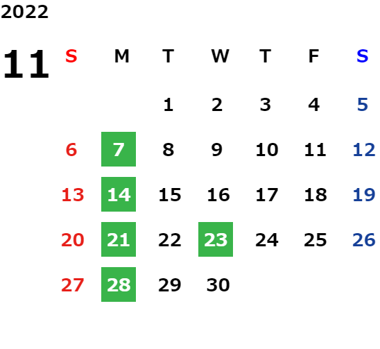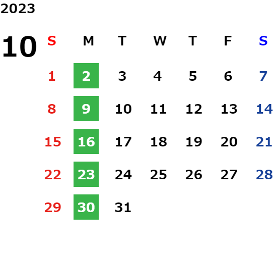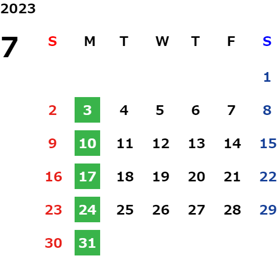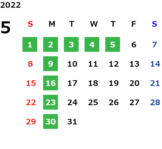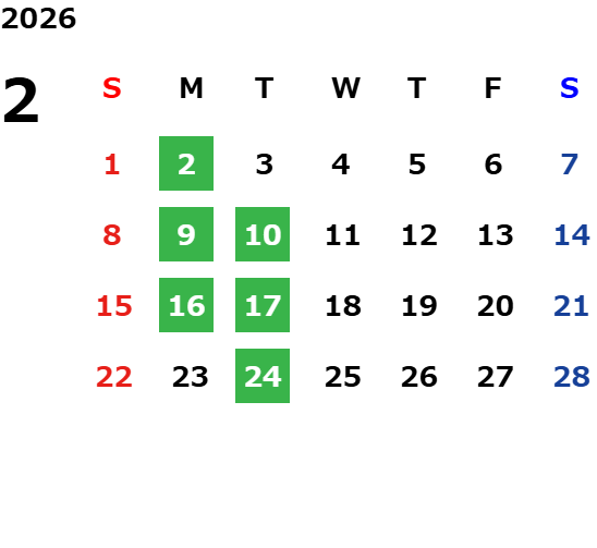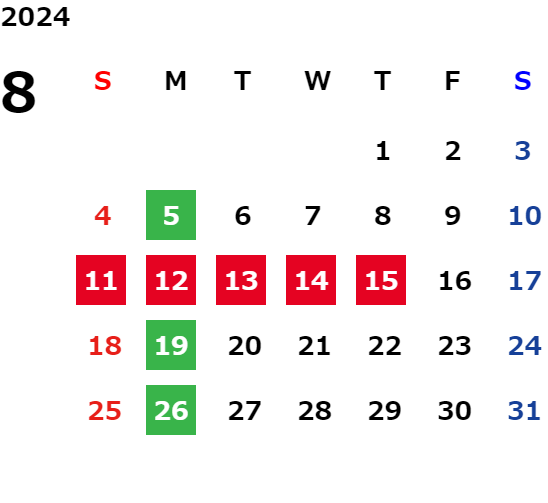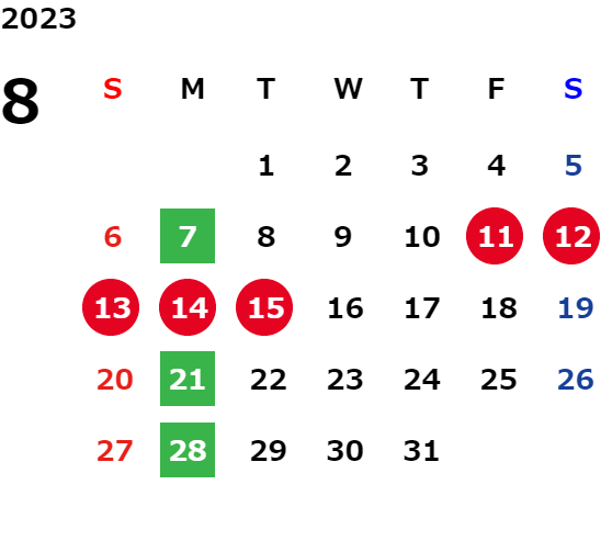 月曜日※・第2火曜日(※祝日の場合は営業、翌火曜日が定休日)