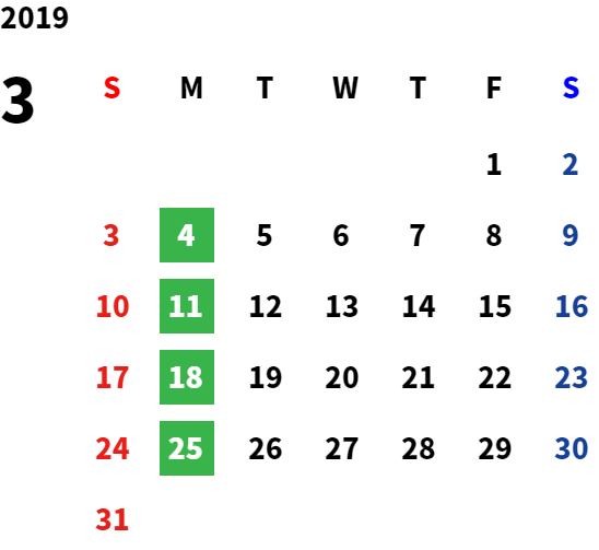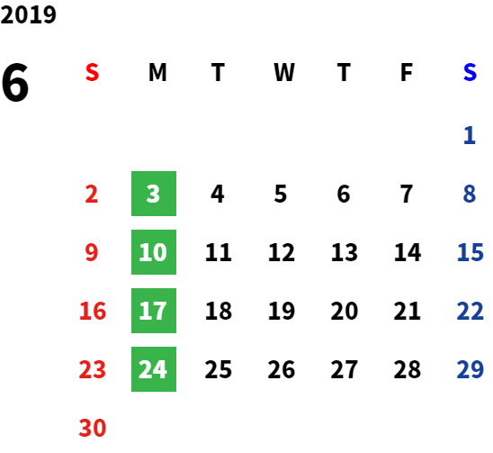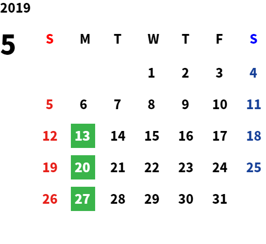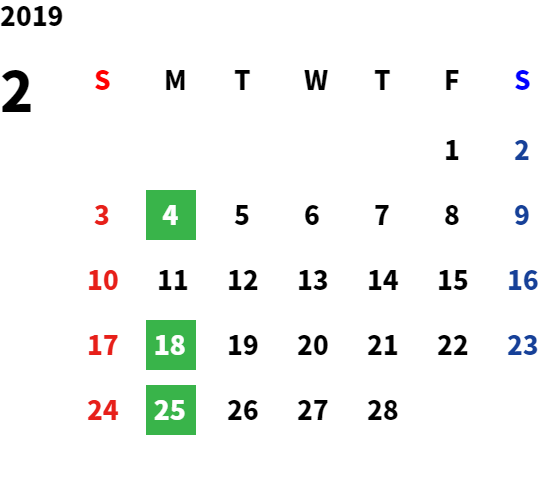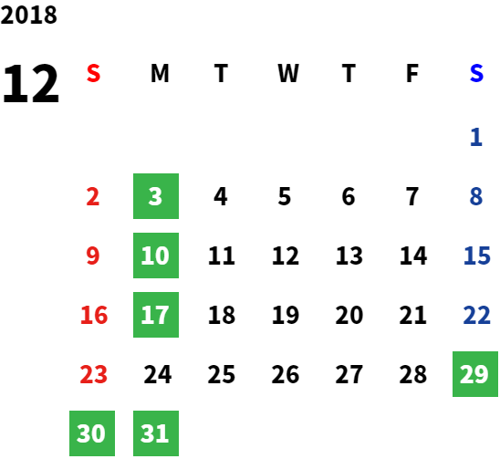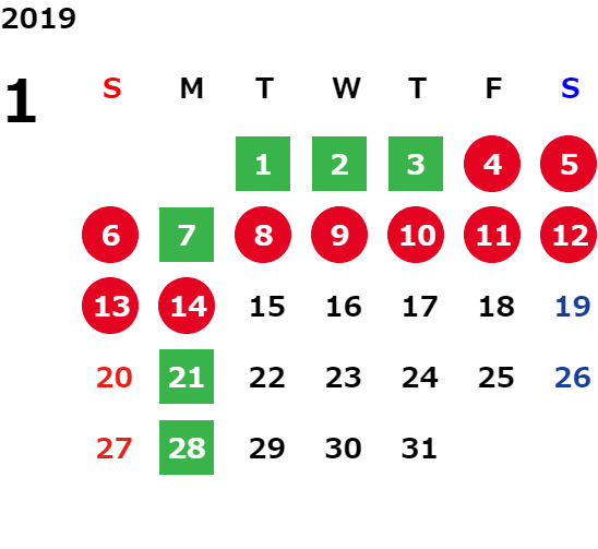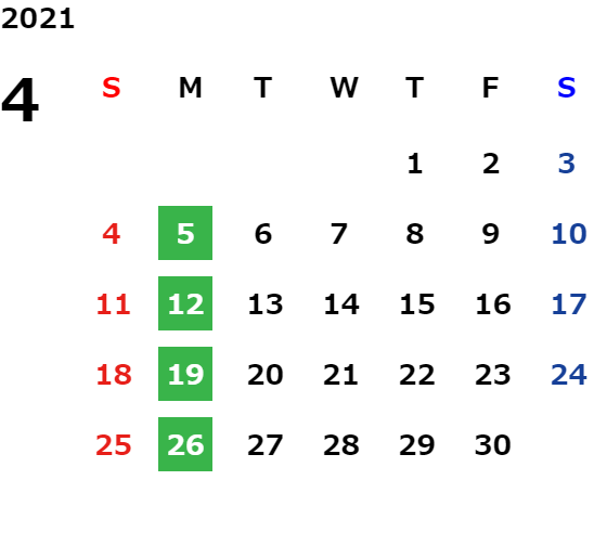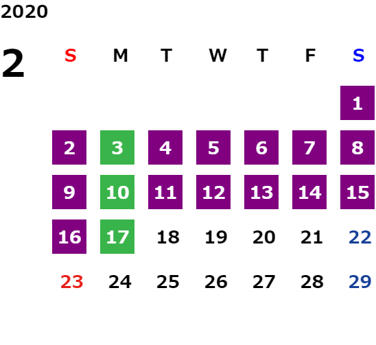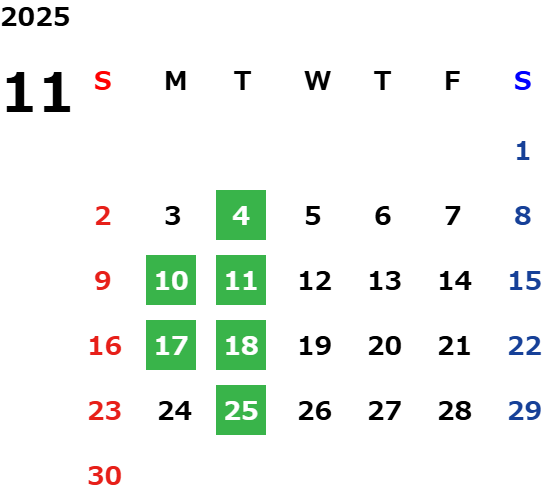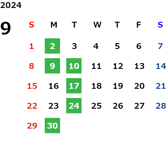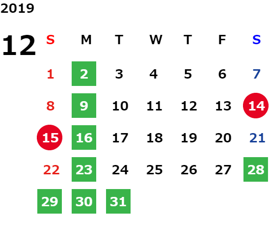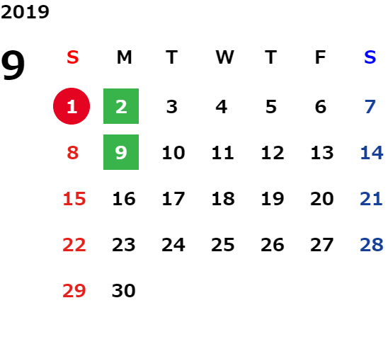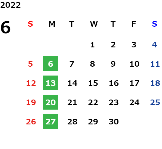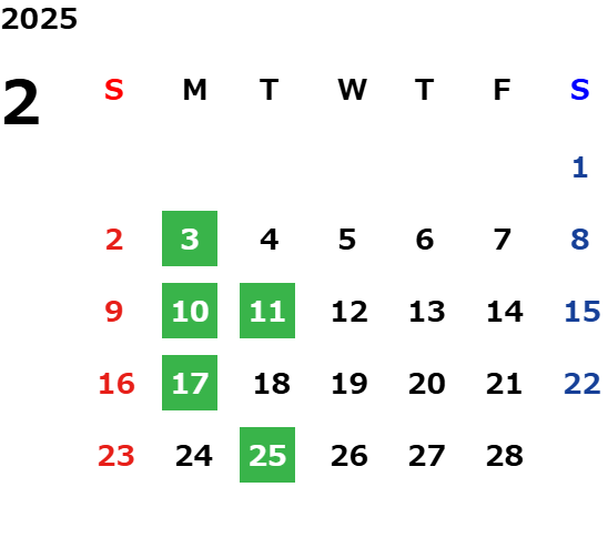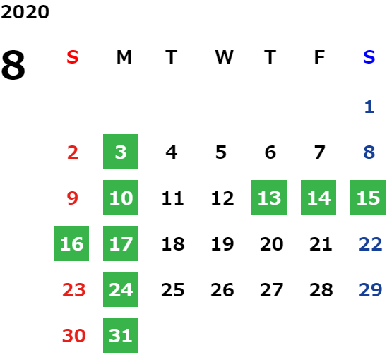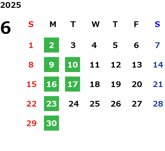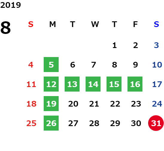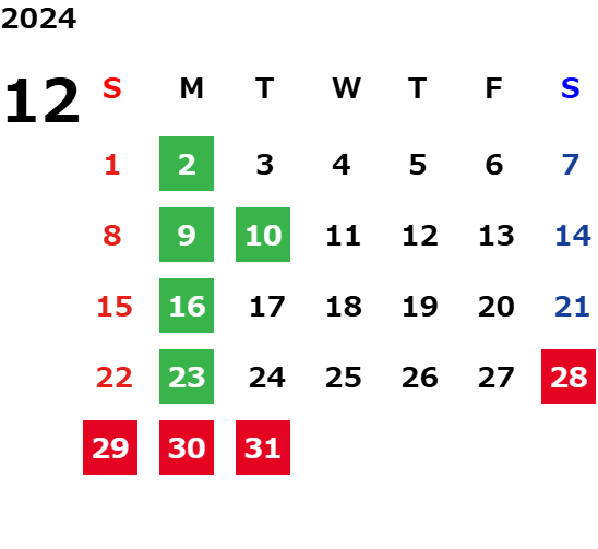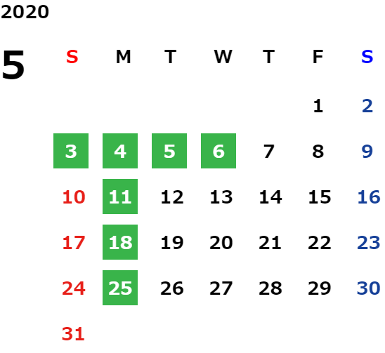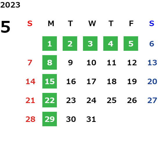 営業日カレンダー